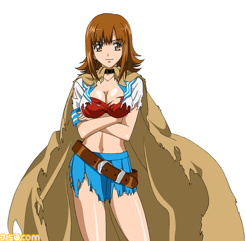 Ato is a very beautiful girl with a large bust. She exclusively wears a variation of Seito Academy's uniform, distinguished by light blue stripes on the end of her shirt and a light blue skirt (similar to Kanpei), instead of the dark blue skirt worn by every other Seito Academy student.