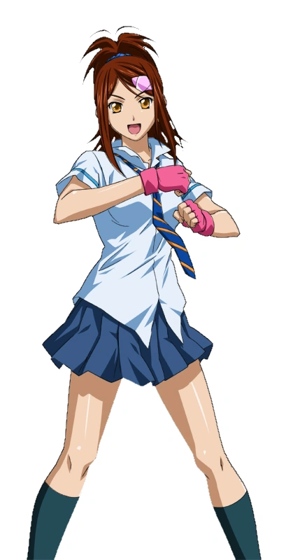 Bachou is a beautiful young buxom girl with long reddish-brown hair that splits at the ends, with some of her hair tied up on her head. She typically wears a pink overcoat and skirt, though she can also be seen in the Seito uniform. In the manga, she bears a more similar appearance to Hakufu.